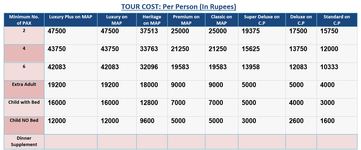 Tour Cost: Per Person (In Rupees)