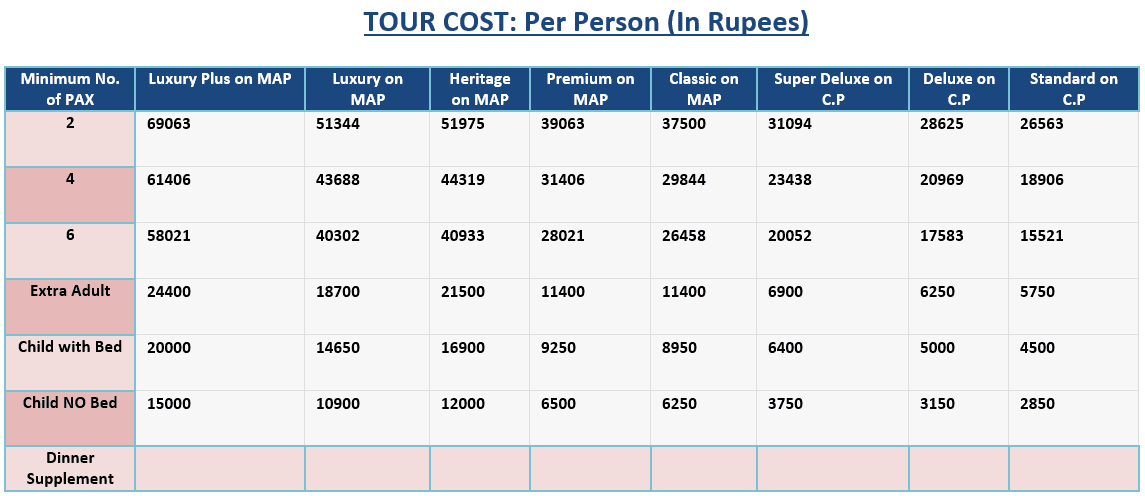 Tour Cost: Per Person (In Rupees)
